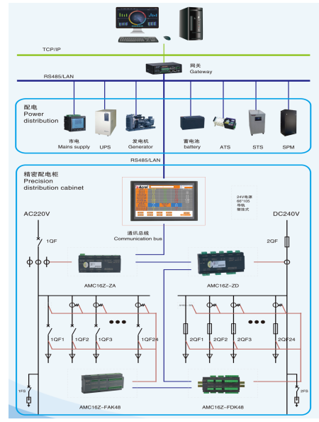 AMC精密配電監(jiān)控解決方案是針對精密配電柜(列頭柜)的監(jiān)控要求,設(shè)計開發(fā)一套完整的解決方案,包括交流、直流(DC-48V、DC240V、DC336V)系統(tǒng),分為多回路采集模塊、互感器、觸摸顯示屏、附件等。