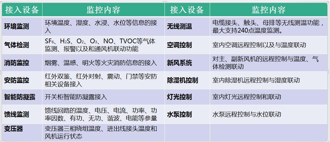 配電室綜合監(jiān)控設(shè)備安裝在配電室、箱變、變電所內(nèi),通過采集和傳輸技術(shù),可以實(shí)時(shí)監(jiān)測配電室內(nèi)的重要場所和設(shè)備的工作環(huán)境,如溫度、濕度、電纜溝水位、漏水/水浸、有害氣體(SF
