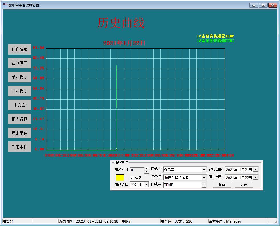 在曲線查詢界面,可以直接查看遙測參量曲線,包括溫度、濕度、水位、有害氣體濃度、電壓、電流等曲線。